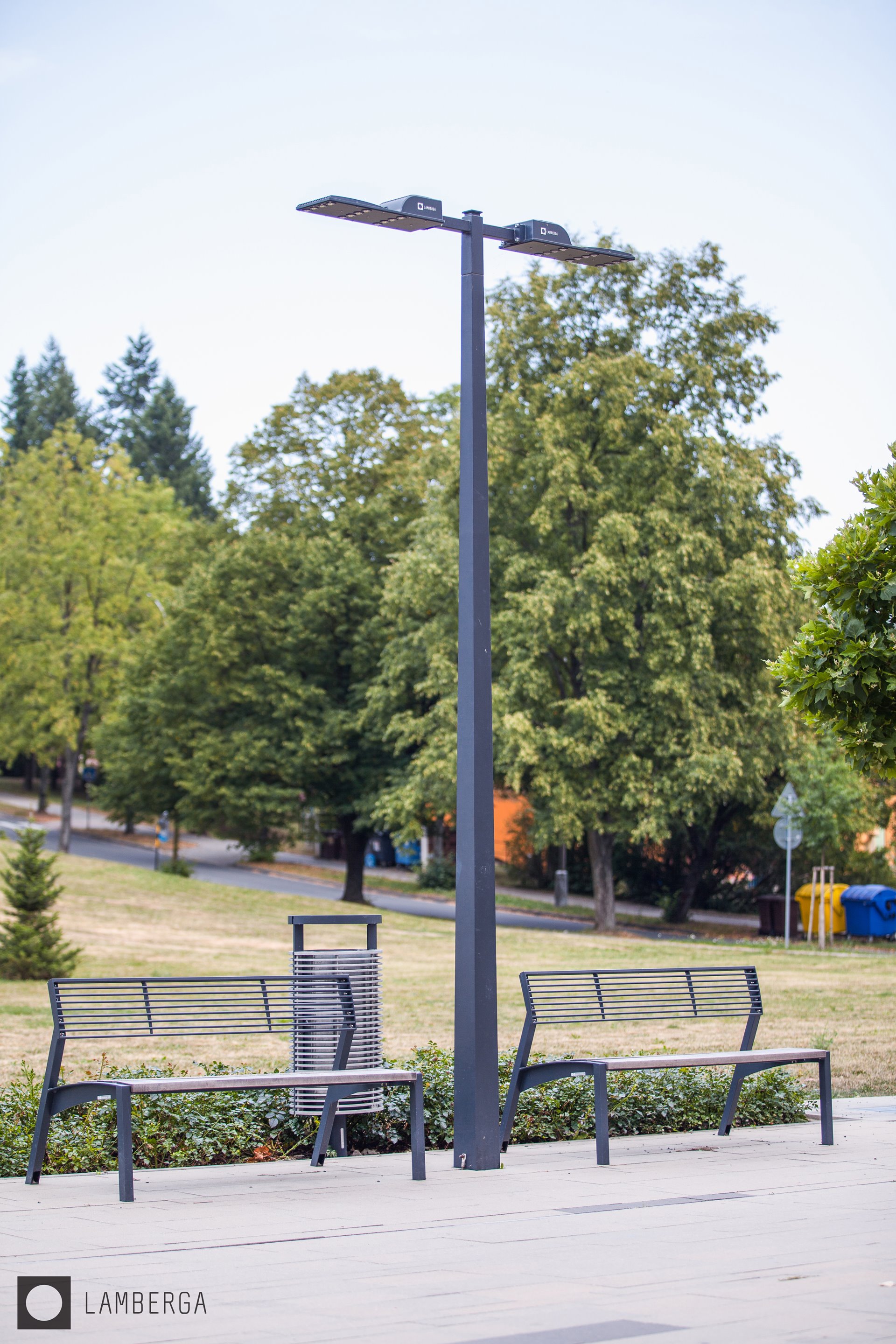 Svítidla LAMBERGA perfektně doplňuje městský mobiliář od českého výrobce mmcité. Nahlédněte do fotogalerie této aktuality.