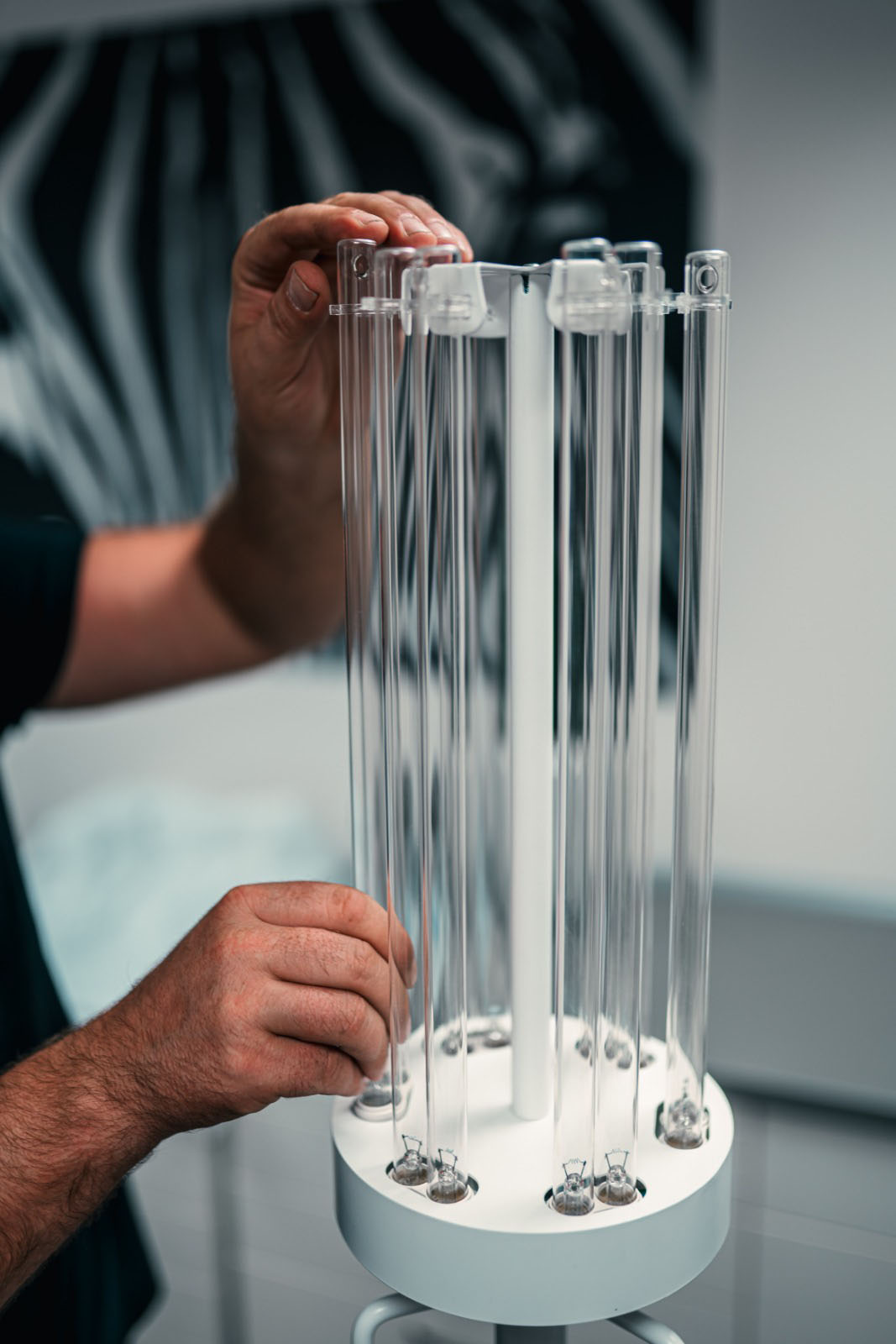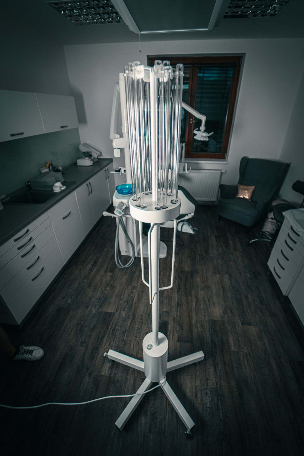 Profesionální mobilní všesměrová GERMICIDNÍ lampa. Lampa GERMIS vyniká vysokým výkonem (tedy krátkou dobou inaktivace virů a bakterií) a je určena pro dezinfekci vzduchu a povrchů zejména v: - domovech pro seniory - nemocnicích, - lékařských ordinacích, - laboratořích, - prostorech sociálních služeb, - školních třídách atd. Vysoký germicidní účinek zajišťuje 6 všesměrových UV-C trubic s celkovým zářivým tokem 72 W v UV-C spektru (253,7 nm), což umožňuje dezinfekci místností v řádu minut. Snadnou mobilitu zajišťují pojezdová kolečka, ergonomický držák. Bezpečnost provozu je zajištěna akustickou signalizací zapnutí a vypnutí. Společnost LAMBERGA jako výrobce zajišťuje instalaci, servis, revize i náhradní díly. Výrobek má CE certifikaci a je chráněn evropským průmyslovým vzorem.