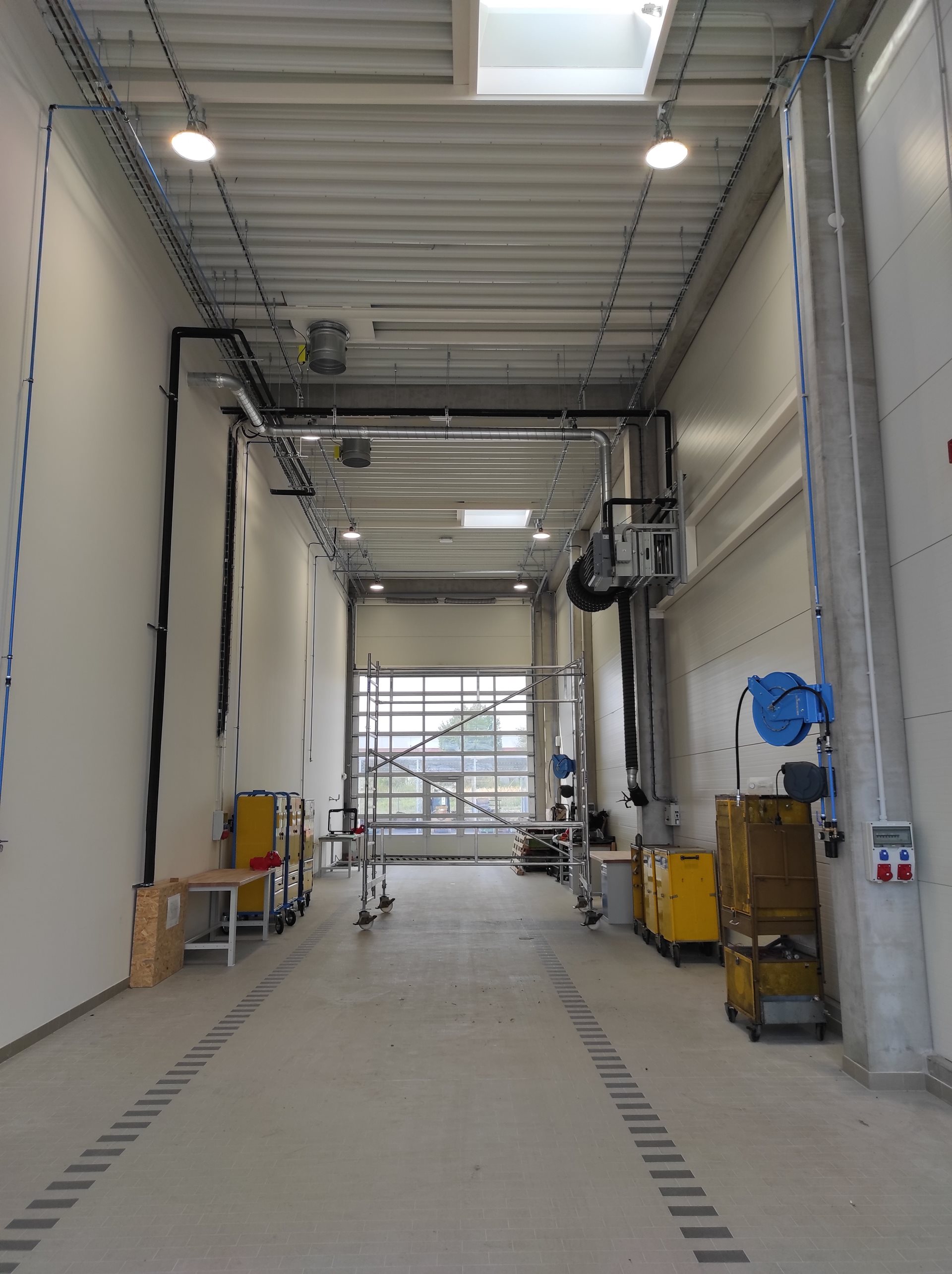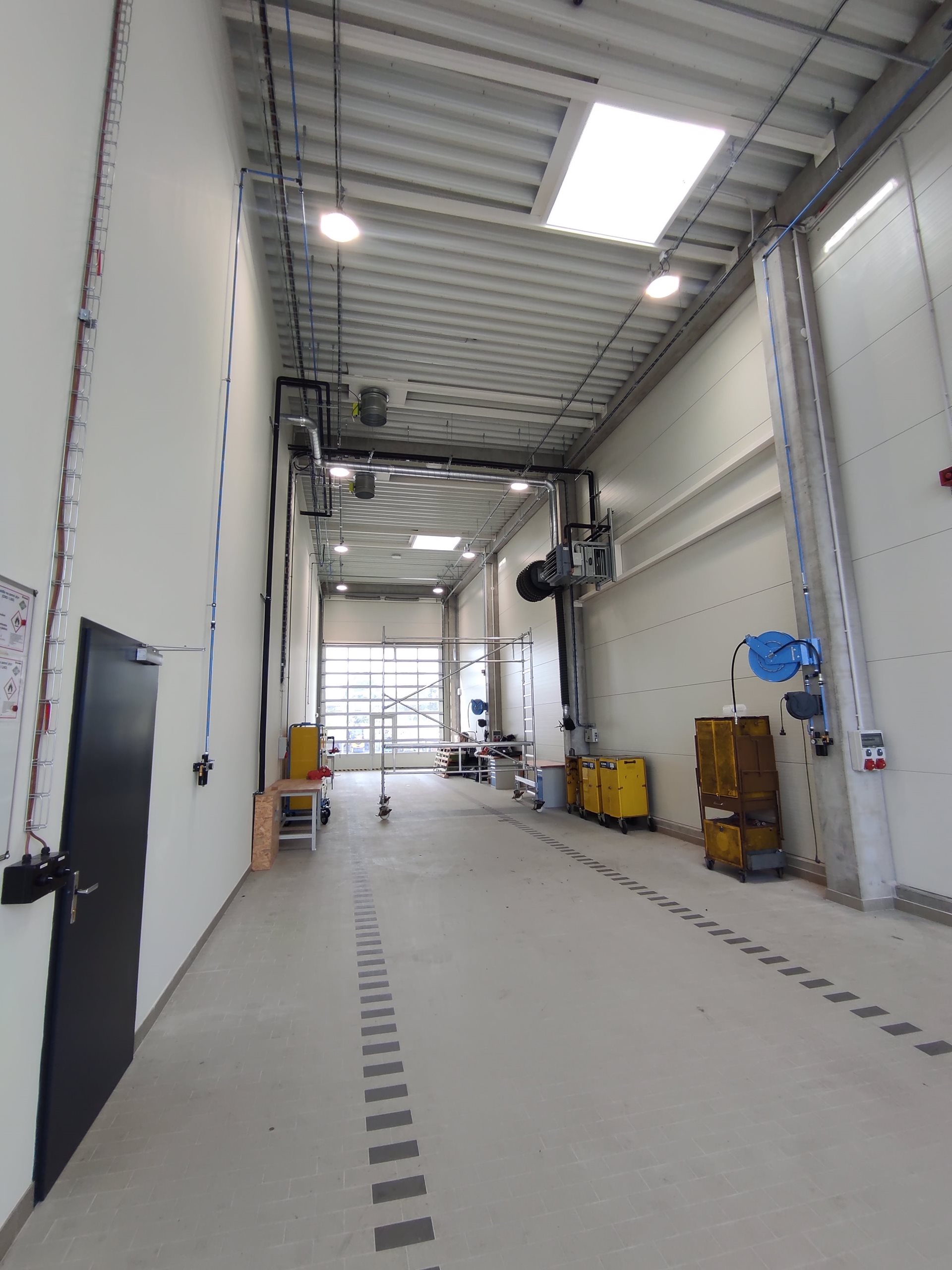 Pro investora jsme spolu s projektantem připravili kompletní studii a světelně technický výpočet s přesným rozložením svítidel do celé budovy. Do hlavní haly a skladů jsme zvolili soustavu svítidel